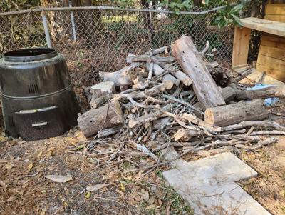 As you clean up the yard and property, you will find fallen branches and limbs and will also prune off older, dead or damaged limbs. Instead of discarding those you need to get in the habit of saving them for the compost bin. The smaller branches and limbs (2 in dia or smaller) I save for the gas powered chipper/shredder (which is one of my priority tools to have for the garden). The power shredder cuts the “debris” into smaller 1/4 inch size pieces to layer into the compost bins. You can also use these branches and even larger old, half rotten logs in a “Hugelkultur” method of placing organic matter below everything in the bed to provide moisture and nutrients as they decompose in the coming months and years.